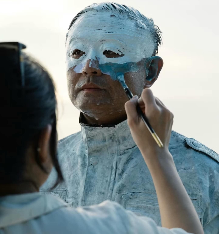 Le 30 novembre, la résidence artistique a culminé avec une performance au coucher du soleil : le corps de l’artiste a été minutieusement peint pour se fondre dans l’horizon mouvant de l’océan Indien, lors de la cérémonie quotidienne « Defining Moment », donnant ainsi naissance à la 11ᵉ œuvre de la collection Ruinart x Liu Bolin : ‘Elements’